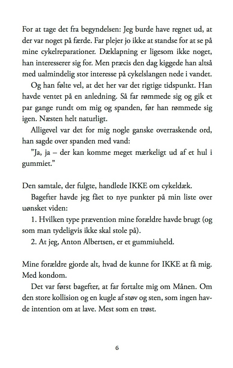12-årige Anton Albertsen finder ud af, at han i virkeligheden er et uheld – eller et hul i kondomet, som hans far formulerer det.