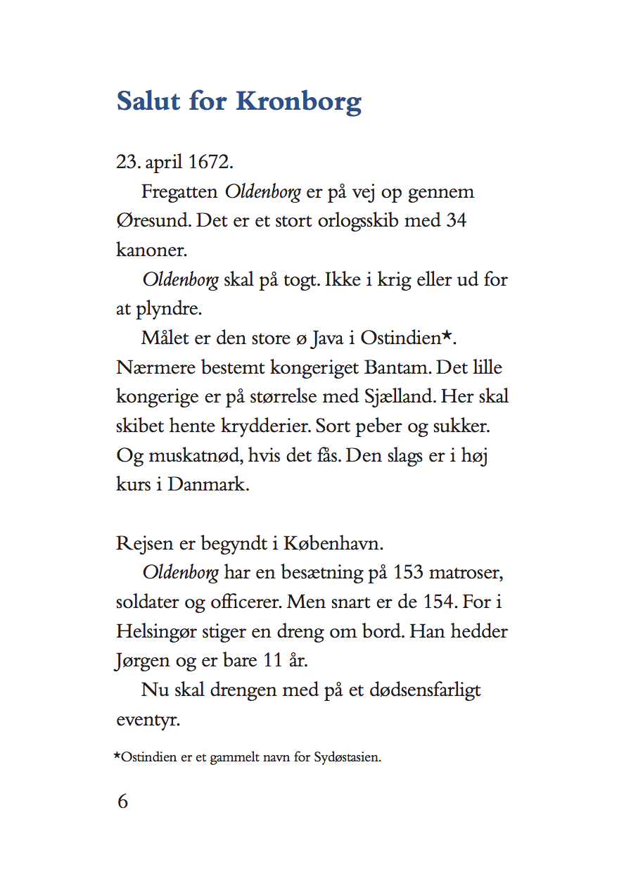 I april 1672 sejler den danske fregat Oldenborg fra København med en besætning på 154 mand. Målet er det lille kongedømme Bantam på Java, hvor skibet skal købe sukker og krydderier.