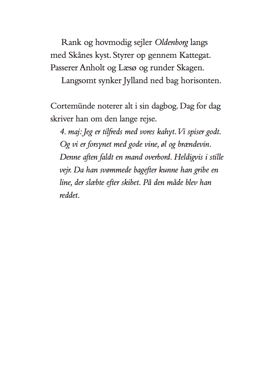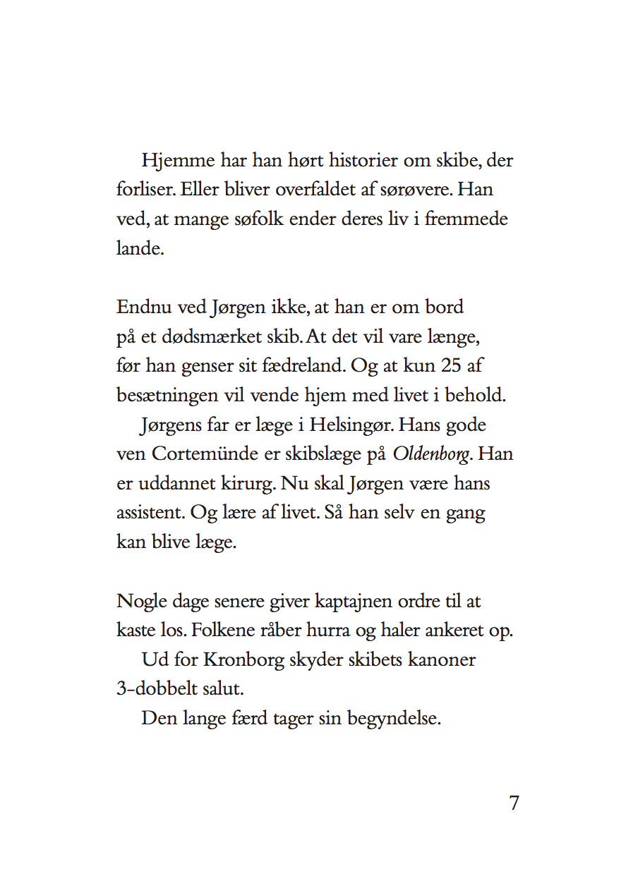 Med om bord følger vi en 11-årig dreng fra Helsingør samt den unge skibslæge Cortemünde, der fører dagbog over den dramatiske rejse.