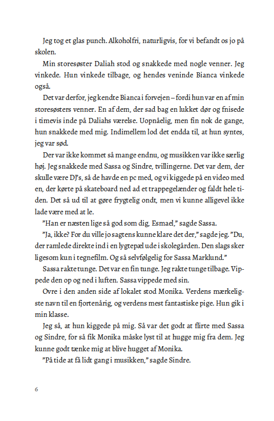 Hun må vel forstå, at det nu er hendes tur til at sige noget. Hun må vel forstå, hvad hun burde sige. Og alligevel gør hun det ikke. Kom nu, tænker jeg. Bare sig det. Sig undskyld, så skal det hele nok blive godt bagefter. Men Ella bliver bare ved med at tie.