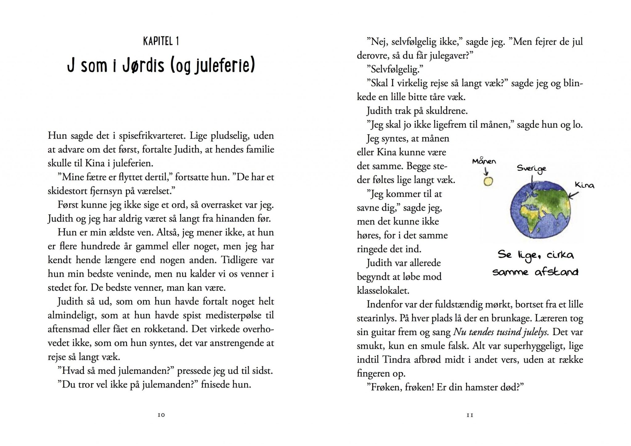 - Jørdis’ bedste veninde, ja, hende Judith med ’h’, rejser til Kina, og Jørdis er ligesom det sidste menneske, der bliver tilbage i byen (ud over klamme Harry Hansson, men han tæller ikke, ifølge Jørdis).