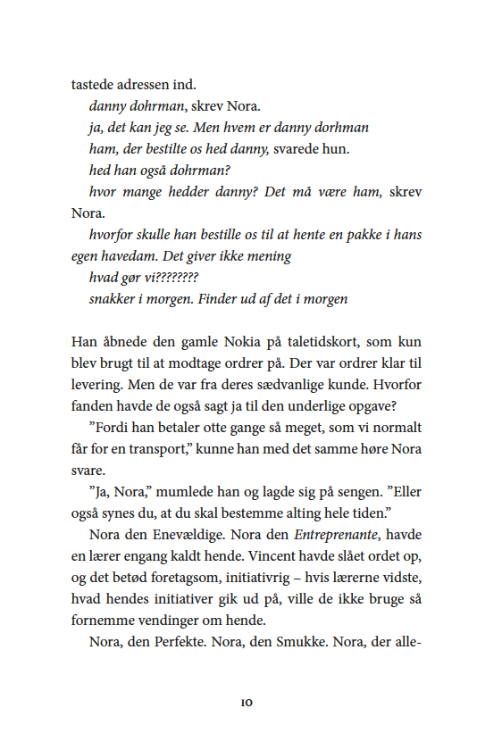 Vincent og Nora deler et glimrende fritidsjob. Det er nemt, de tjener gode penge, og så er det forholdsvis uskyldigt, selvom det ikke er helt lovligt. Og kun en lille smule farligt.