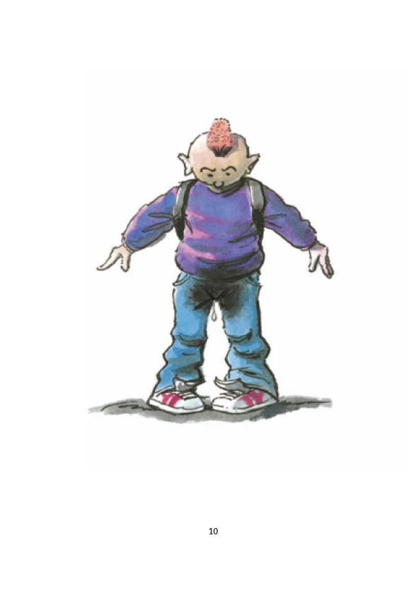 På vej til skole møder Hubert en hund, der tisser på ham lige midt foran på bukserne. Hvordan skal Hubert dog klare skoledagen uden at blive drillet?