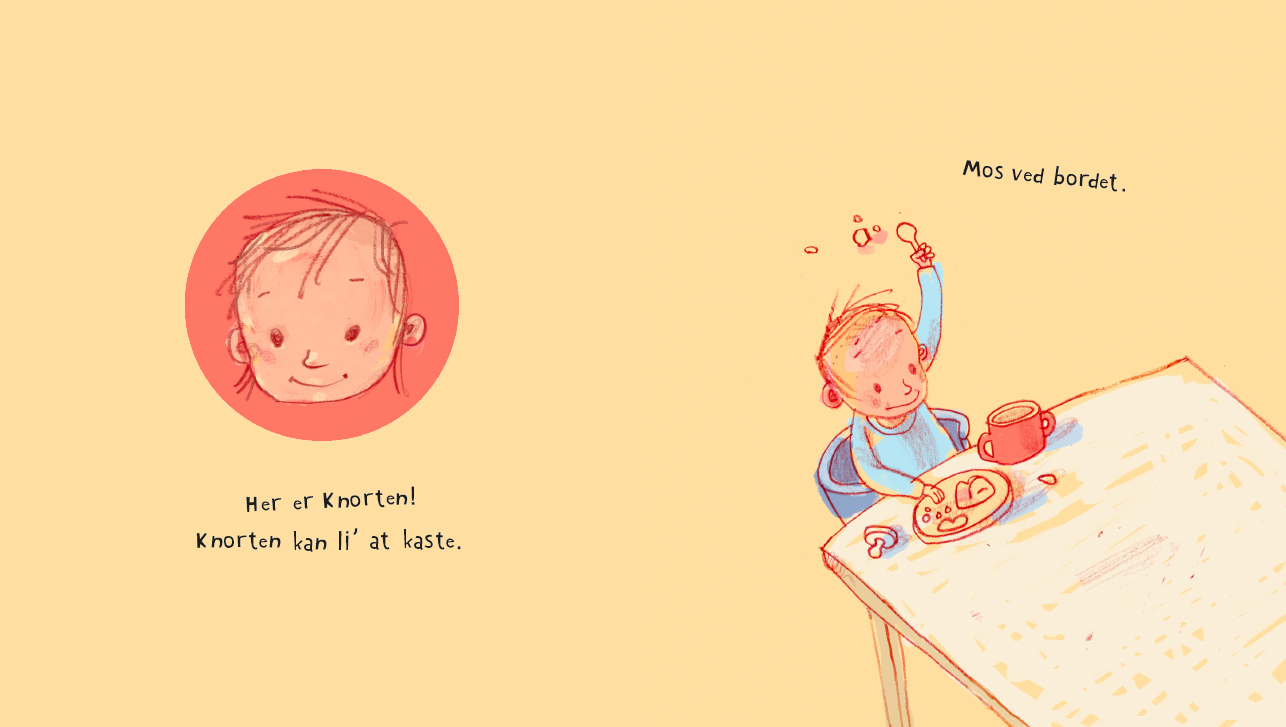 Knorten er en lille aktiv gut, som elsker at kaste – med mos ved bordet og med sand i sandkassen. Men allerhelst med bolde. Knorten har en hel kurv fuld af bolde, som han kan kaste rundt med inde i huset. Små bolde, som bliver væk, en stor bold, som kommer til at vælte en vase, gøre far forskrækket og skræmme katten. Indtil den også bliver væk.
