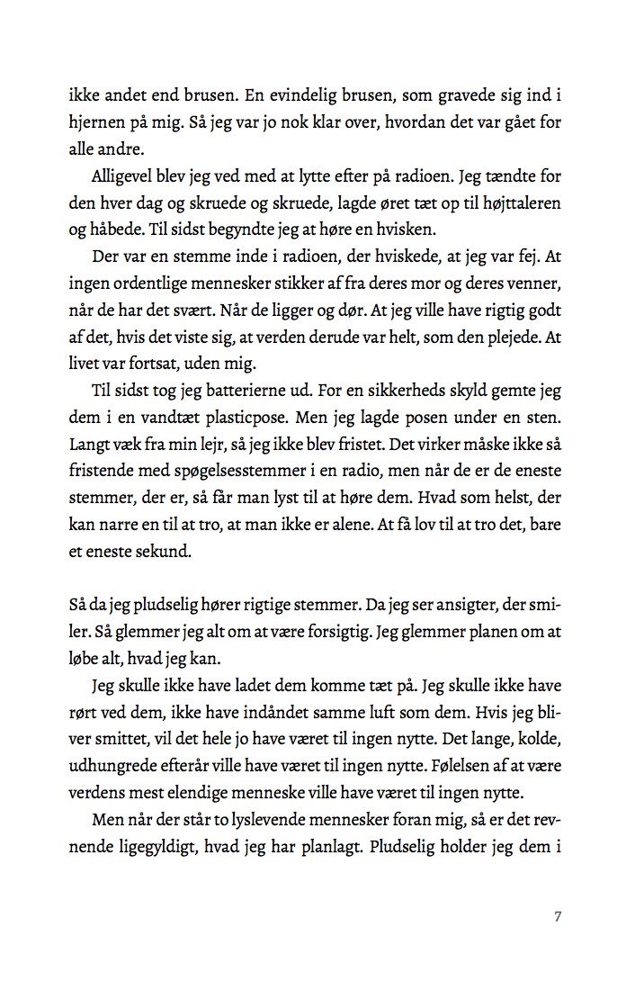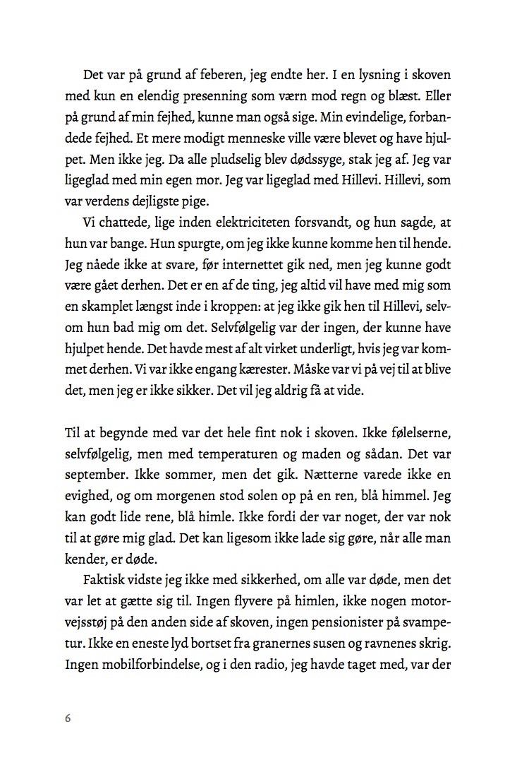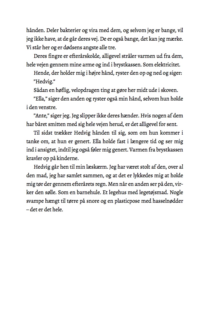 Ante tror, at han er alene om at have overlevet den uforklarlige febersygdom, som har spredt sig til hele samfundet og slået alle ihjel. Men pludselig dukker Ella og Hedvig op, og han følger med dem til gården, hvor de har bosat sig. Det er en lettelse at møde andre mennesker, men det er også svært. Hvad gør man, når man skal bo sammen, og alle ikke vil det samme? Er det okay at blive forelsket og tænke på sex på trods af, at resten af verden er død af feber? Og må man drømme om fremtiden, selv om man er en kujon, som bare løb, når man burde være blevet?