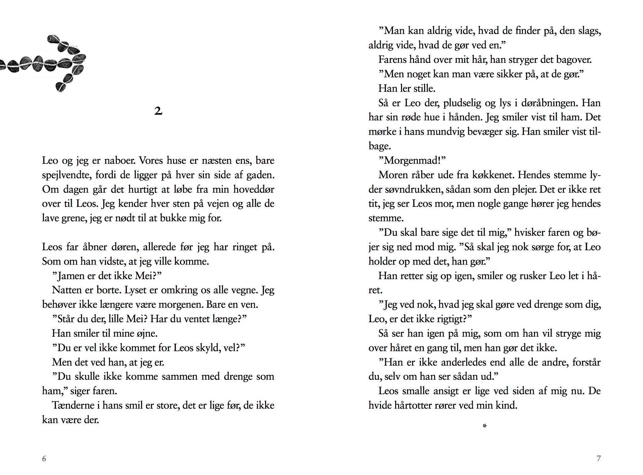 Jeg hvisker, at gaden ikke må være for bred at krydse. Jeg er Mei. Jeg har aldrig fundet ud af, hvordan man kan se, om nogen er gode eller onde.