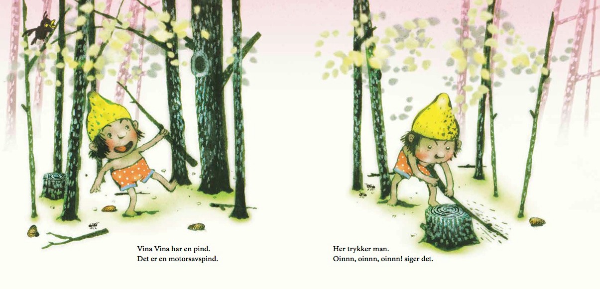 Vina Vina har en pind. Det er en motorsavspind.
